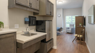 Photos Harmony Gardens Photo Gallery Entrance and Lobby Apartment Homes Exteriors and Outdoor Spaces Lifestyle and Conveniences Rehab Suite & Gym Specialized Care Suites & Memory Care Traditional Skilled Care