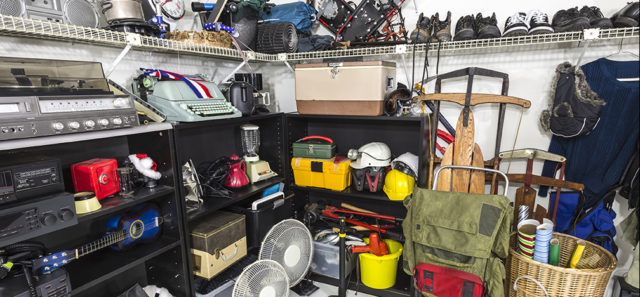 Goods, goods everywhere: clothing, toys, games, books, magazines, appliances small and large, furniture, bedding, cars new and old, trucks, bicycles, tricycles, scooters, camping gear, boats, boat motors, fishing gear, sporting goods, old computers and printers, old TVs and radios, old record players and speakers, music CDs, LPs, cassettes, saved boxes, Christmas decorations, lawn mowers, art, clocks, luggage, toasters, waffle irons, irons, electric skillets, decks of cards, jigsaw puzzles, Monopoly games, photographs and photo albums, scrapbooks, saved letters, uniforms now too small, musical instruments, guns and ammo, tools, paint—some old and some good yet, broken down lawn mowers, you name it.